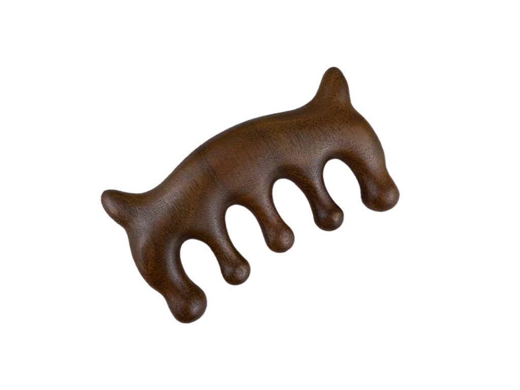 Pevný dřevěný hřeben s většími zaoblenými zuby a speciálními zaoblenými hroty pro masírování svalů a efektivnější lymfodrenáž. Umožní vám příjemnou domácí masáž zejména šíje, boků, stehen, lýtek i rukou. Lze použít jemně i pro masáž pokožky hlavy.