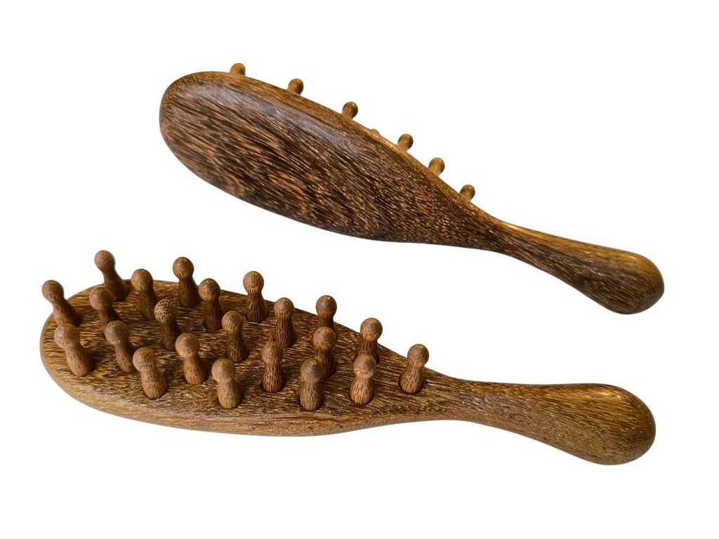 Dřevěné masážní hřebeny jsou z přírodního materiálu, ekologické a velmi příjemné na používání.