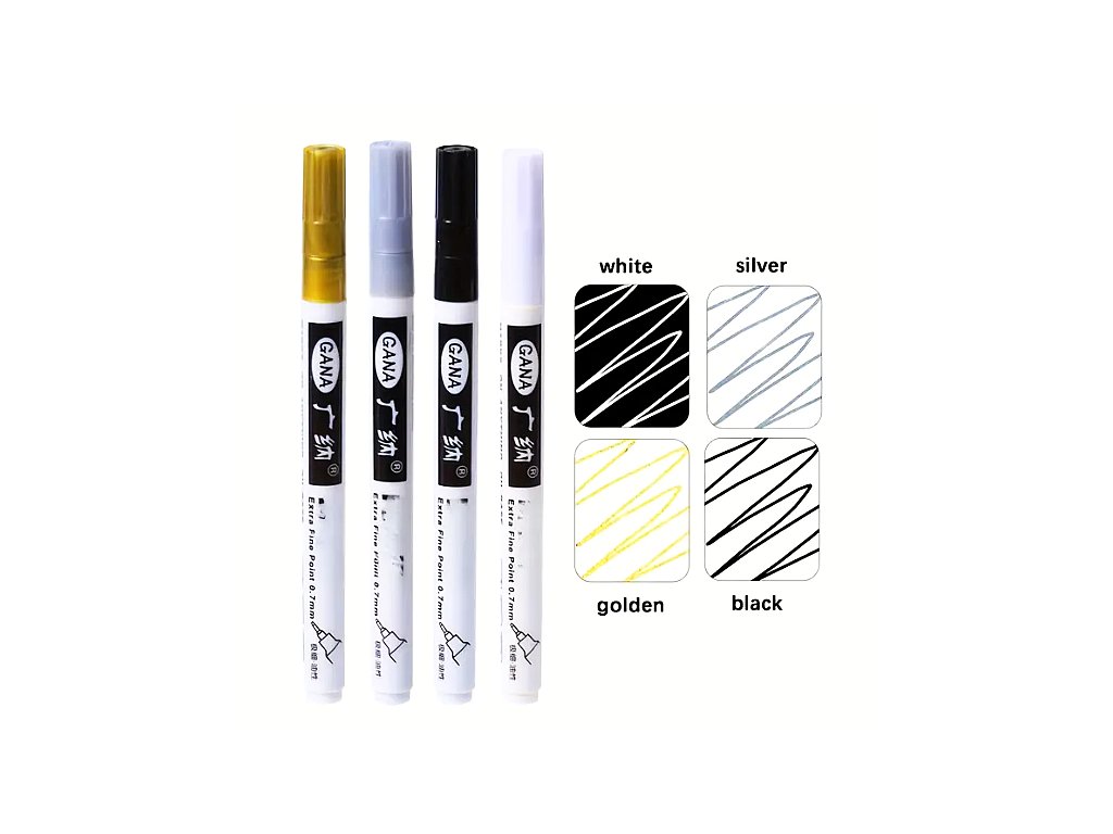 Objevte kouzlo přesného a stylového psaní s kvalitní sadou popisovačů GANA Fine Liner! Tato sada obsahuje čtyři elegantní barvy – zlatou, stříbrnou, černou a bílou – které vám umožní tvořit na různé povrchy s dokonalou přesností. Díky jemné šířce stopy 0,7 mm jsou ideální pro kreativní projekty, popisování, dekorace i detailní kresby.