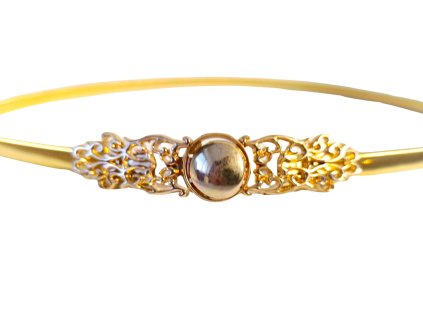 Kovový pružný pásek na dámské šaty s ozdobnou sponou. Barva: zlatá nebo stříbrná Délka: 72 - 79 cm