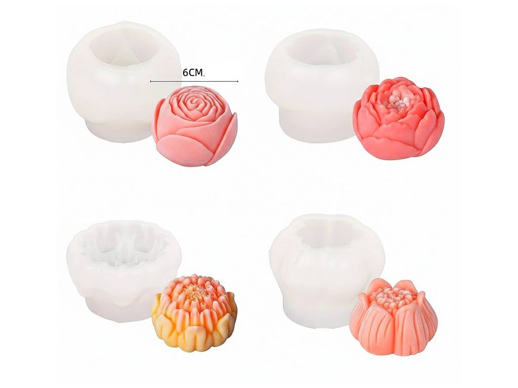 Středně velké silikonové formy na domácí tvoření - resp. sada 4 ks v balení. Ideální na výrobu květů z mýdla, vosku, sádrové odlitky a dekorace, orgonity z pryskyřice a podobně.