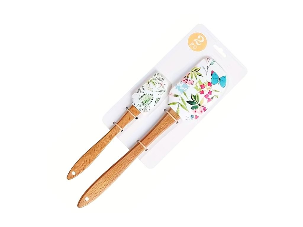 Obě stěrky mají pevnou dřevěnou rukojeť a silikonovou hlavici s potiskem květin, listů a motýlů, který dodá vašemu tvoření nádech přírody a radosti.